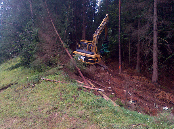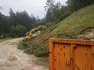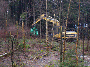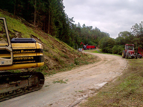 Das Lohnunternehmen Gerhard Ruckdeschel in 95482 Gefrees im Fichtelgebirge / Oberfranken bietet für landwirtschaftliche Unternehmen, Landwirte, Waldbesitzer, Forstwirtschaft, Kommunen, Umweltamt, Wasserwirtschaftsamt, Straßenbauamt, Behörden, Ämter, ... folgende Leistungen: Harvestereinsätze, Stockfräsarbeiten, Transporte, maschinelle Holzernte, Forstmulchen, Pflanzvorbereitungen, Stockfräsen, Stockrodung, Stockentsorgung, Waldwegebau, Erdaushub, Baufeldräumung, Rodung, Maschinentransporte aller Art. In unserem zertifizierten Unternehmen kommen folgende Maschinen zum Einsatz: Harvester, Tieflader zum Umsetzen und Abtransport von Maschinen, Mulchfräse UZM 700 von AHWI, Bagger CAT 317 ( 19t) mit verschiedenen Arbeitsgeräten, zum Beispiel der Fällsammelgreifer C 350 von Westech.