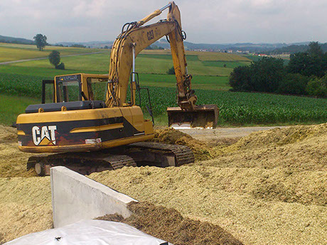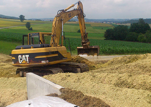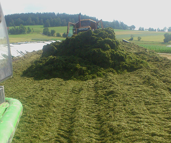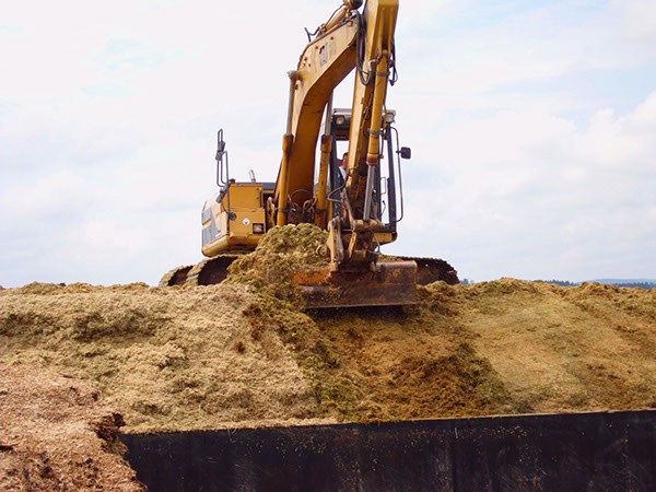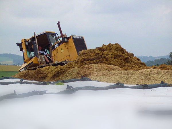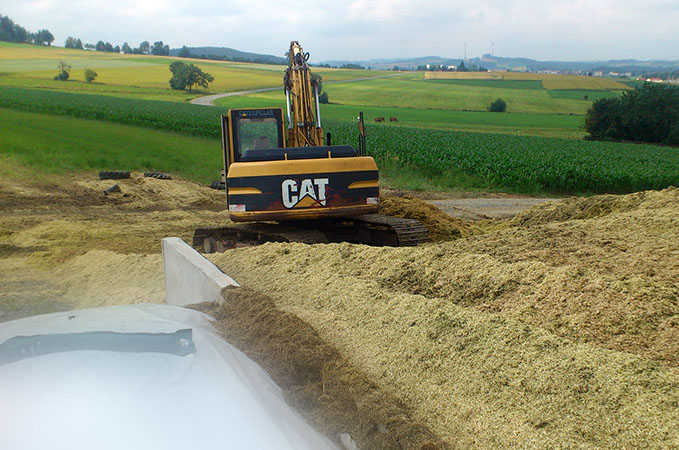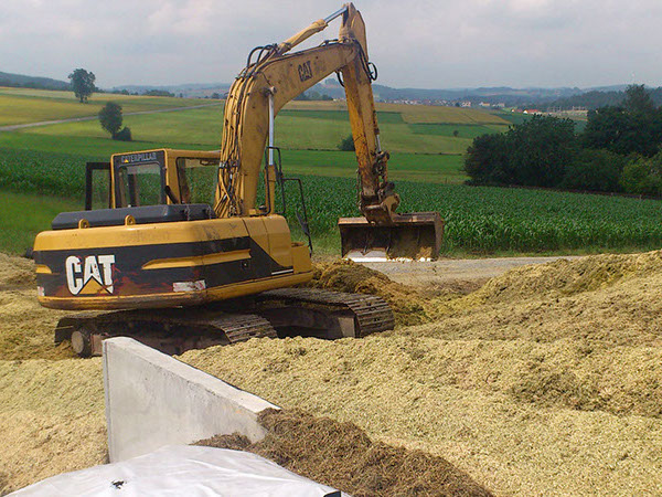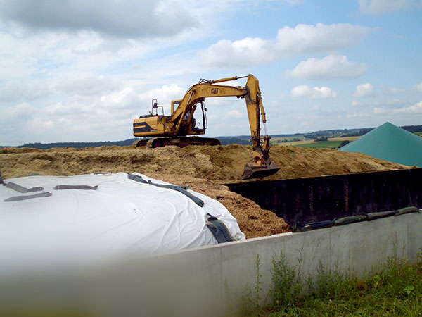 Biogasbetrieb in Gefrees: Silo anrichten und walzen